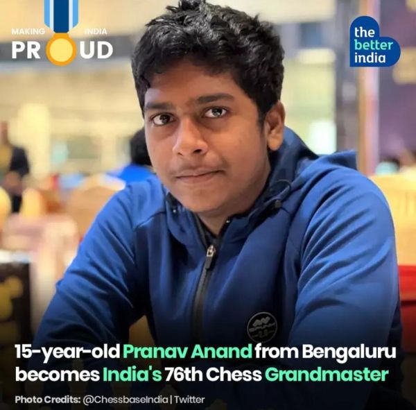 15 year old, Pranav Anand from Bengaluru, became India’s 76th Grand Master after winning against IM Emin Ohanyan of Armenia in the World Youth Chess Championship in Mamaia, Romania. He received the title after crossing an Elo rating of 2500.