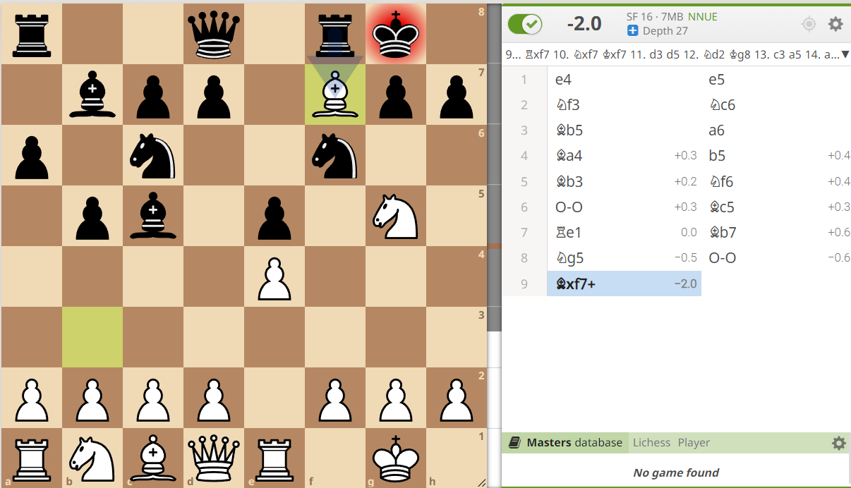 There are a couple of games which are instructive. The first one is rook and pawn versus knight and bishop. This is a game where my students would come to the position where the bishop and knight would be exchanged for the pawn and the rook, and a perfect game would be played after that. Essentially you would have a game with 1 inaccuracy (Ng5) and 1 Blunder (Knight or Bishop ✕ f7).