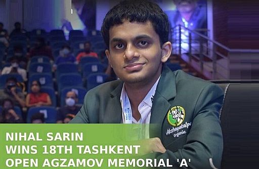 Nihal Sarin won the Agzamov Memorial tournament in Tashkent, Uzbekistan in Mar 2025. Nihal finished the tournament unbeaten, recording six wins and four draws in the ten rounds.