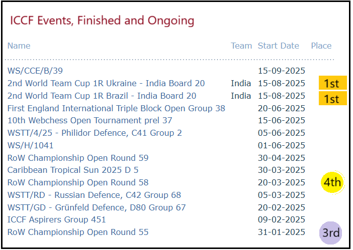 Ed: These games were played soon after Pankaj Dubey started his journey in CC and they are beginner level games. Now contrast this with a game just completed where Pakaj holds an opponent rated 2294 with flawless play.